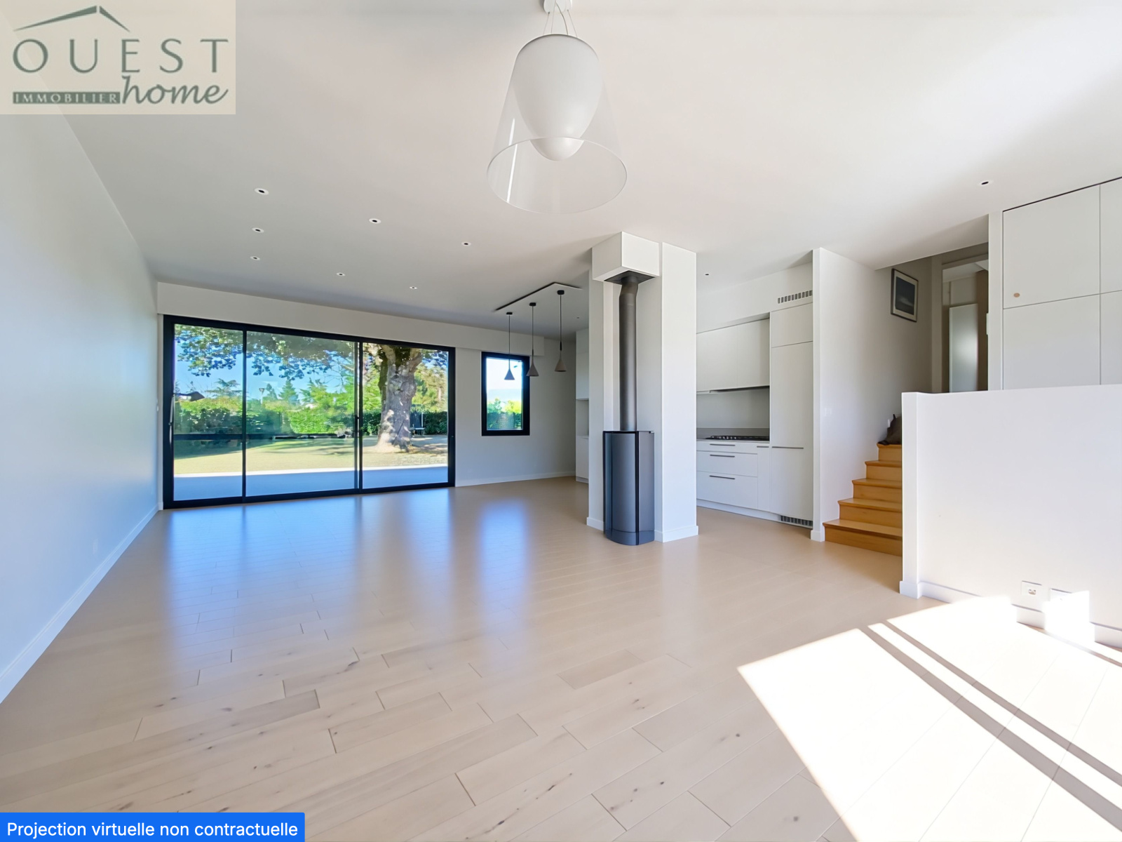 Cette configuration peut être transformée en un seul espace de vie de 51 m2 environ avec son salon, salle à manger ouvert sur la cuisine et prolongé de part et d'autre vers la terrasse et le jardin.