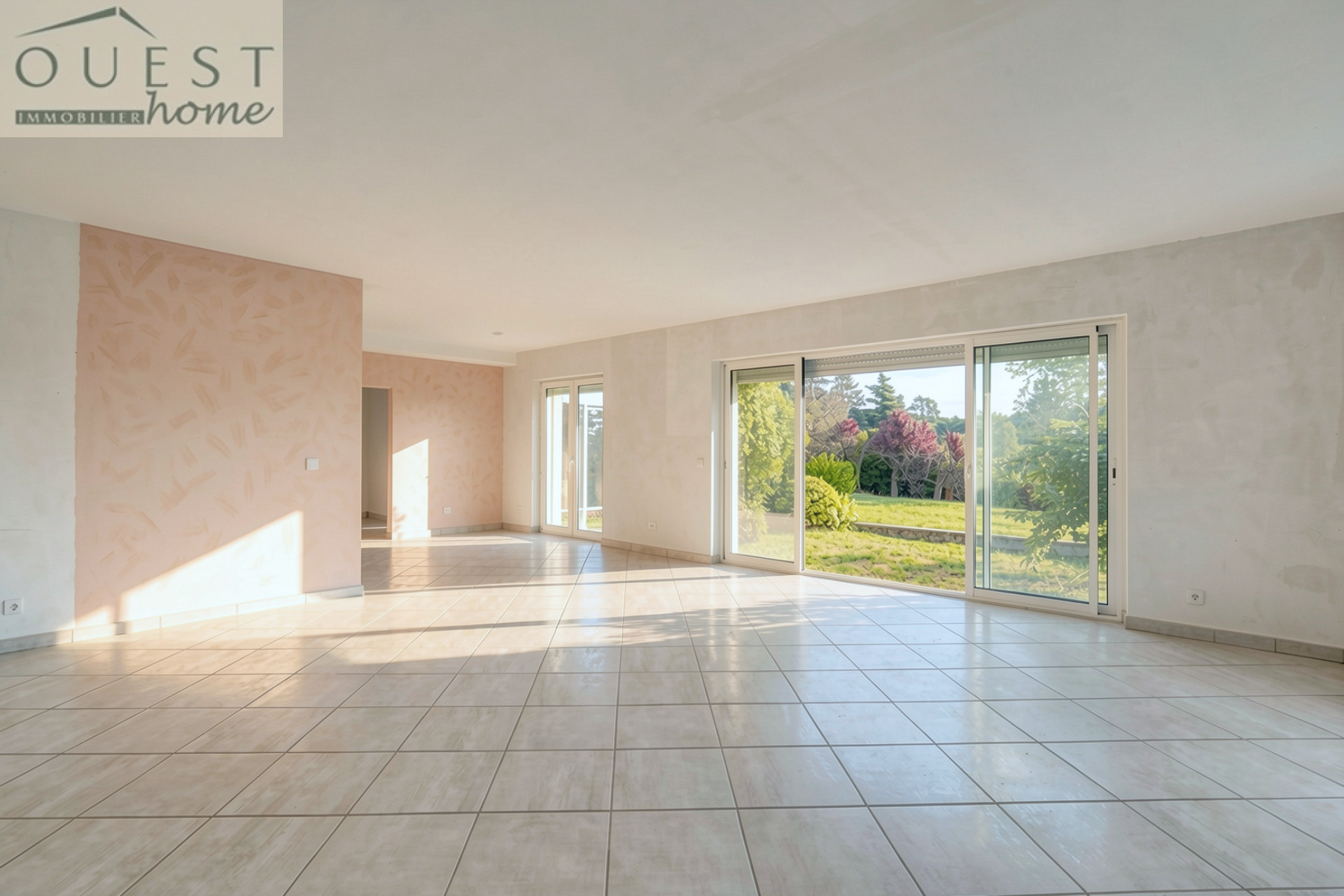La partie rdc ,baignée de lumières grâce à de larges ouvertures, avec son salon et sa salle à manger, s'organise autour de volumes ouverts et d'une circulation naturelle entre l'intérieur et l'extérieur : deux terrasses, l'une exposée au Sud, l'autre à l'Ouest offrent différents espaces au fil de la journée et des saisons. Ce niveau accueille également deux chambres ,une salle de bain et wc.