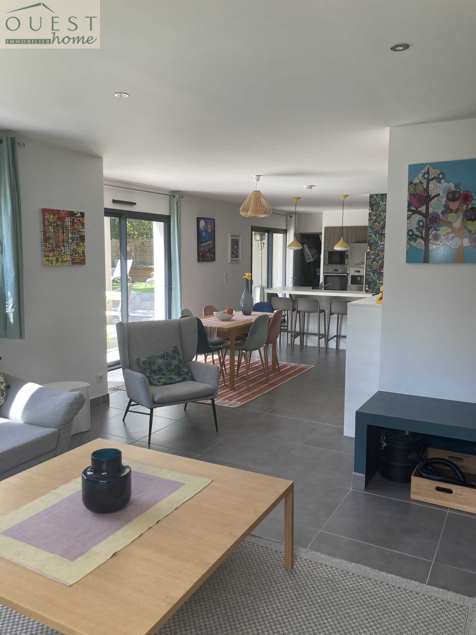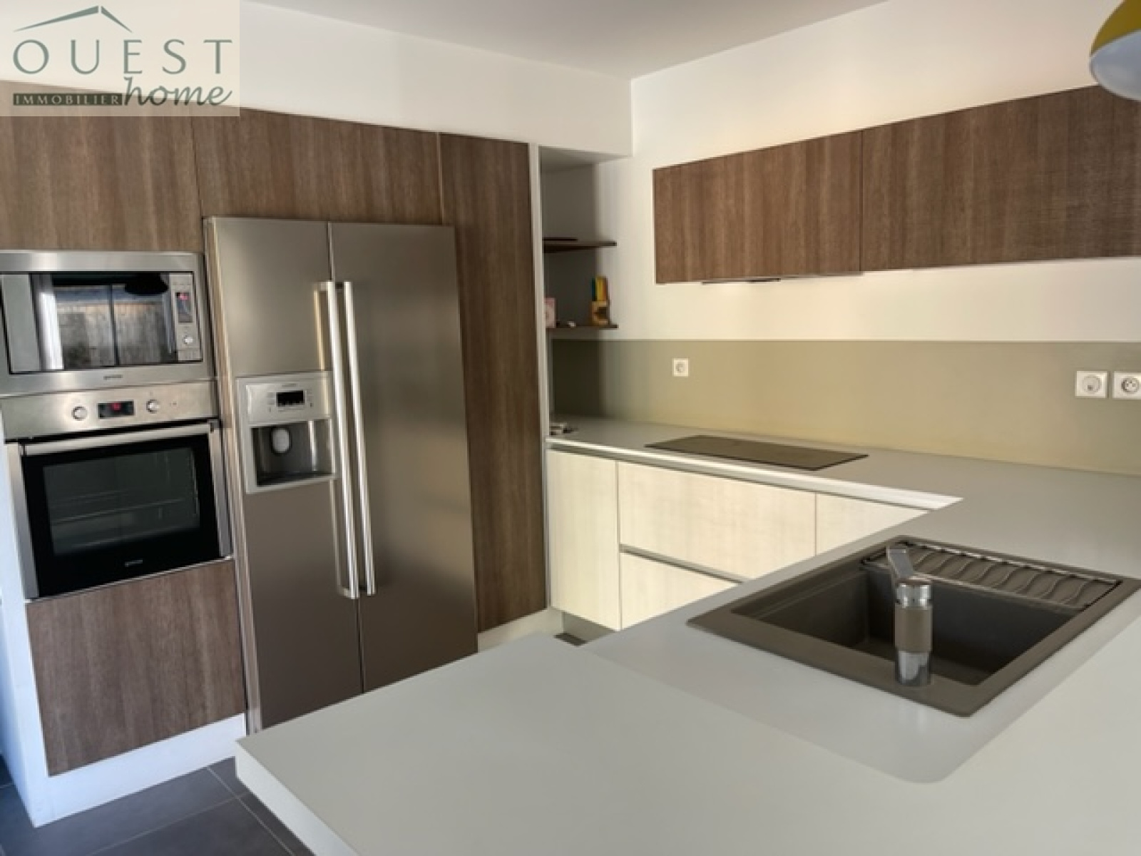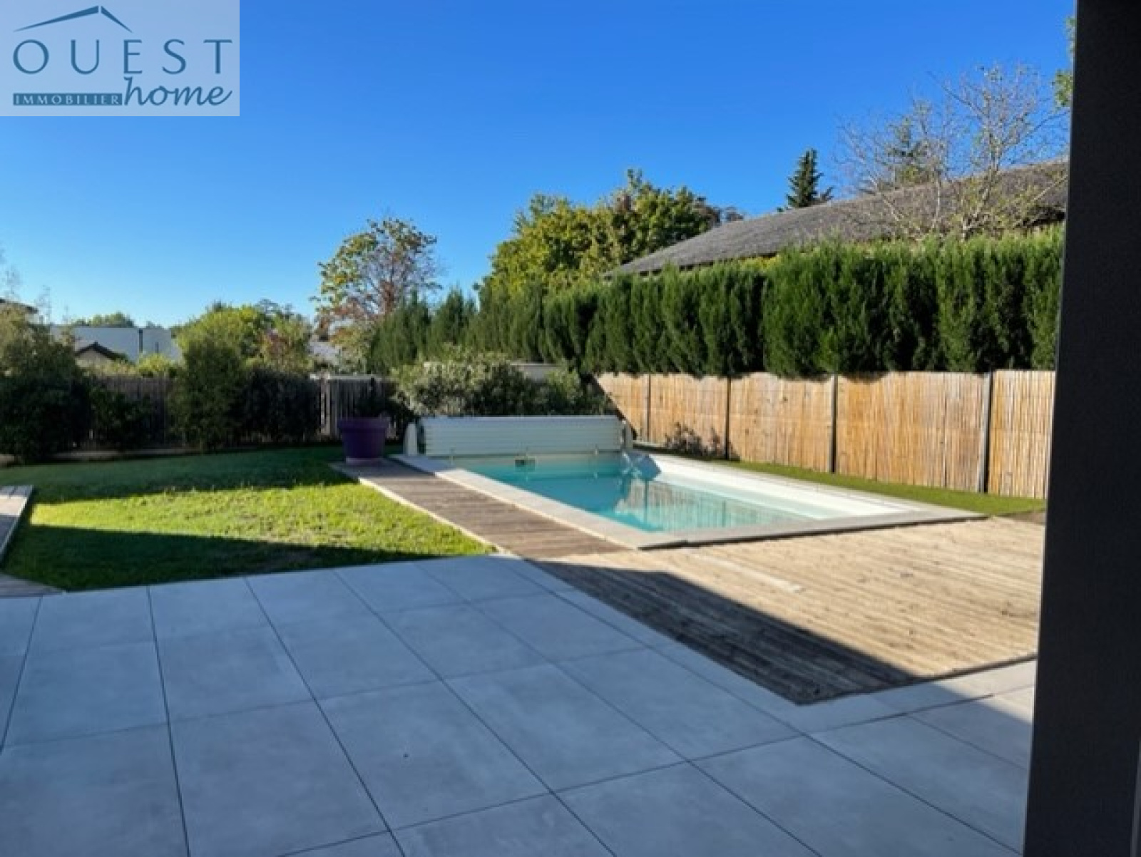 BIEN VENDU Dans domaine résidentiel sécurisé, proximité Pôle numérique et Halles de l'Ouest , belle maison récente de 2014 d'environ 150m2 sur un terrain paysagé et clos de 626m2 avec piscine chauffée. Composée sur 2 niveaux , elle est agencée de la manière suivante: En RDC,grande pièce de vie avec cheminée, cuisine US équipée,le tout pour 50m2,un bureau,une suite parentale avec dressing ,SD'eau et WC. A l’etage, 3 chambres,1 SDB,1WC. Prestations HTG (pompe à chaleur,climatisation....) Un garage double complete ce bien . Au calme , à voir absolument ! Honoraires charge vendeur Contactez Béatrice Fabre 06.07.03.32.72