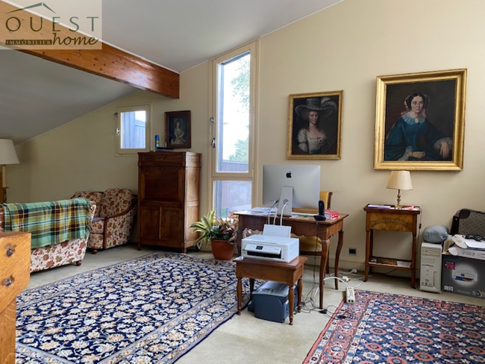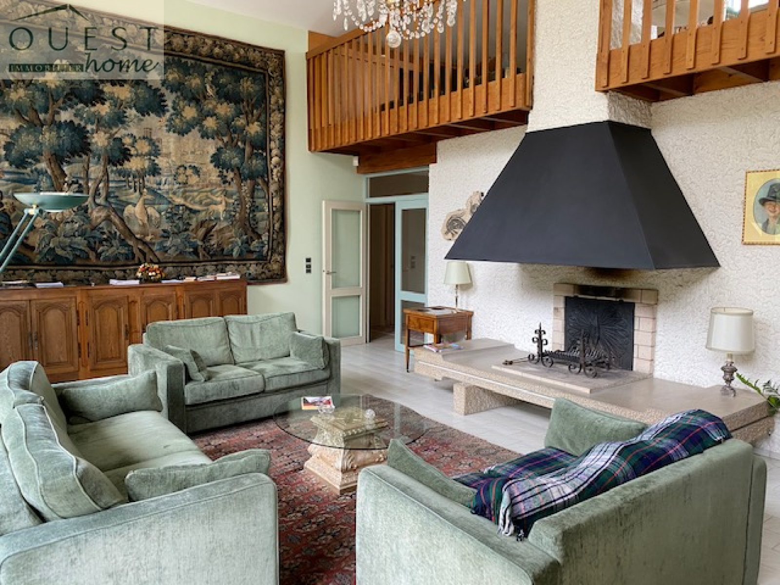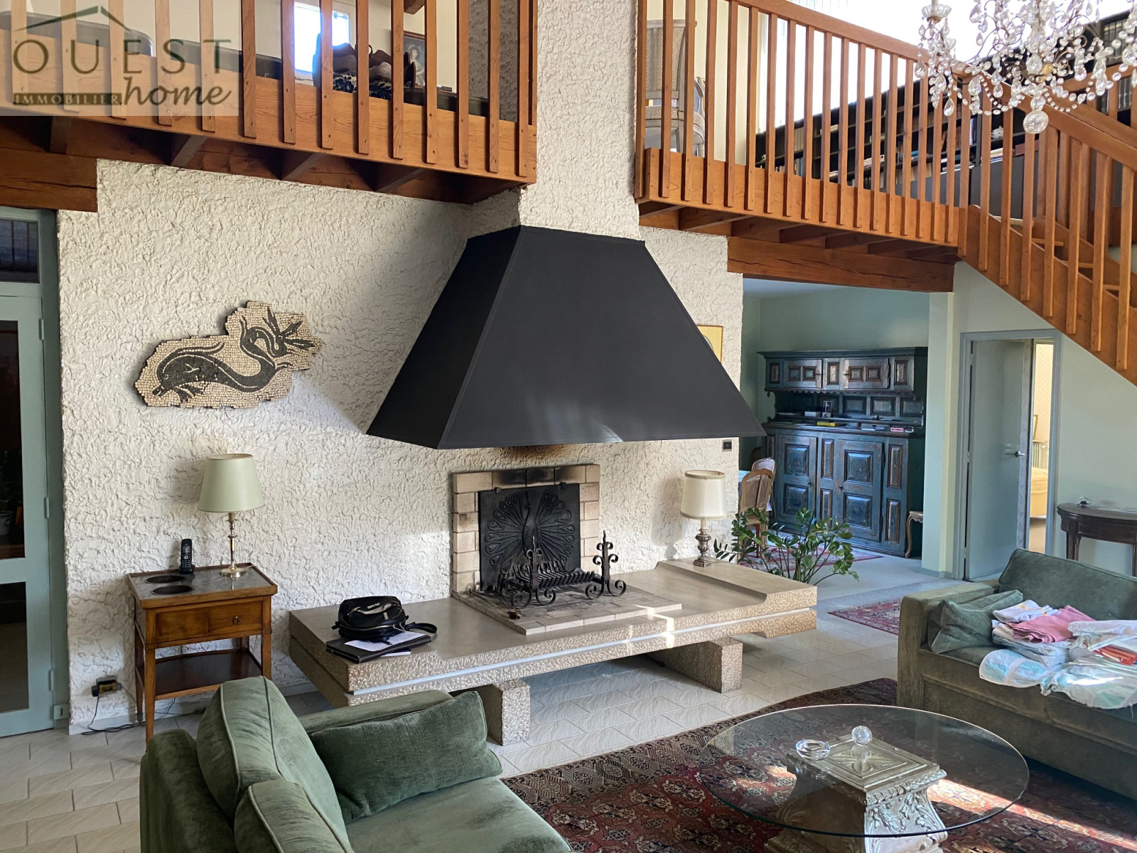 Elle se compose de la manière suivante : grande pièce de vie déplafonnée sur mezzanine avec salle à manger attenante, cuisine équipée indépendante.