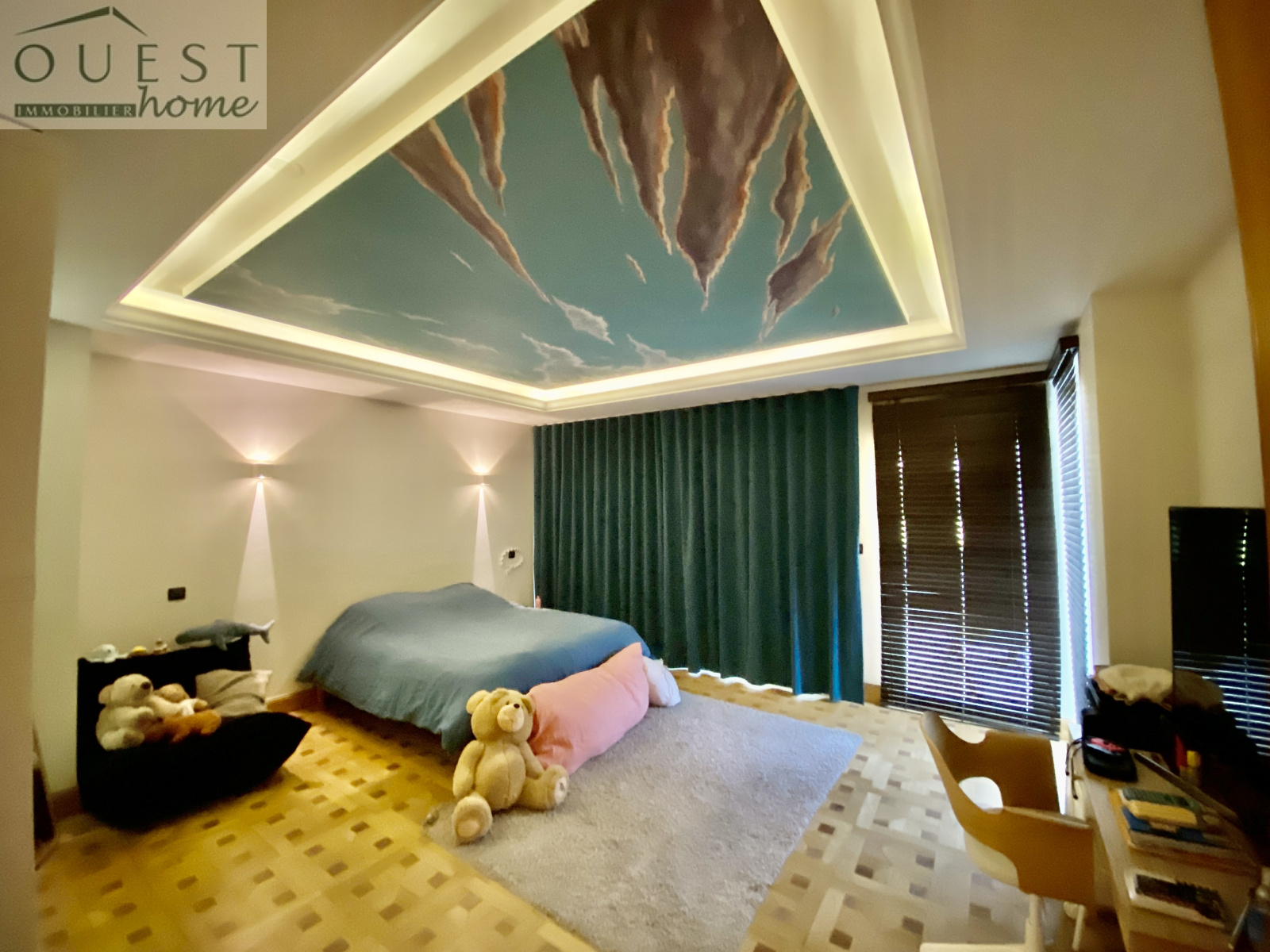 Au demi-niveau, deux grandes chambres, une salle d’eau et des rangements répondent parfaitement aux besoins d’une vie de famille. À l’étage, une seconde suite parentale profite d’un bel espace comprenant un bureau, un dressing, une salle de bains et un balcon privatif.