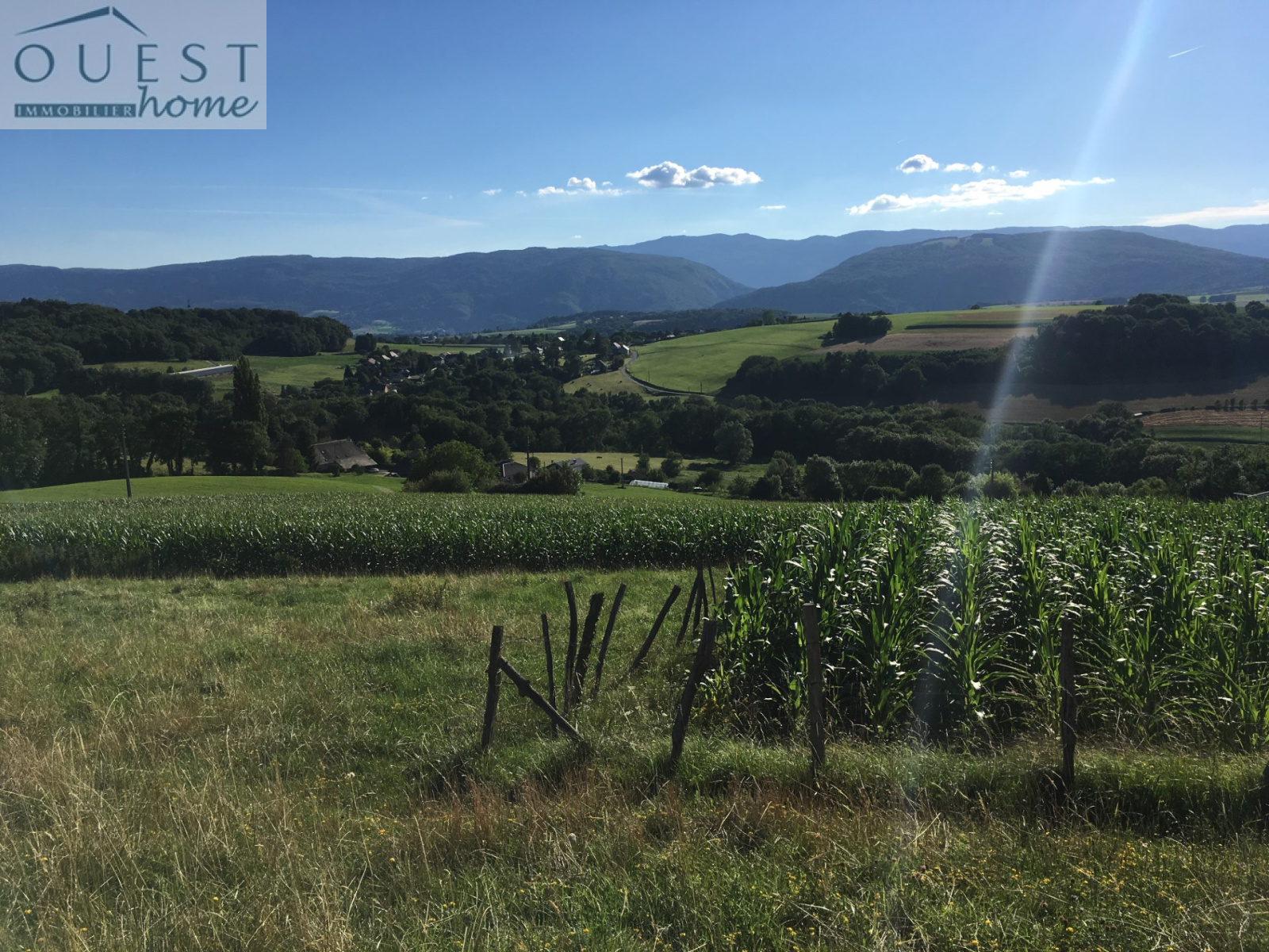 Elle est orientée Sud-Ouest, charpente en bon état, très beaux volumes, vue à 160 degrés sur l'Albanais du Salève au Sallenôves ; est annexé 1 ha 6 de terrains agricoles, dont 2 000 m² en zone agricole constructive.