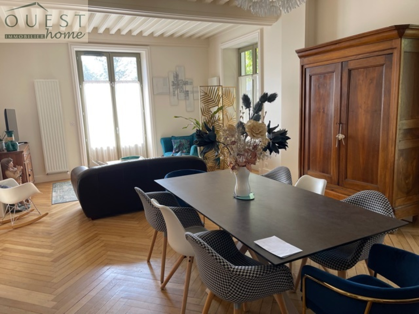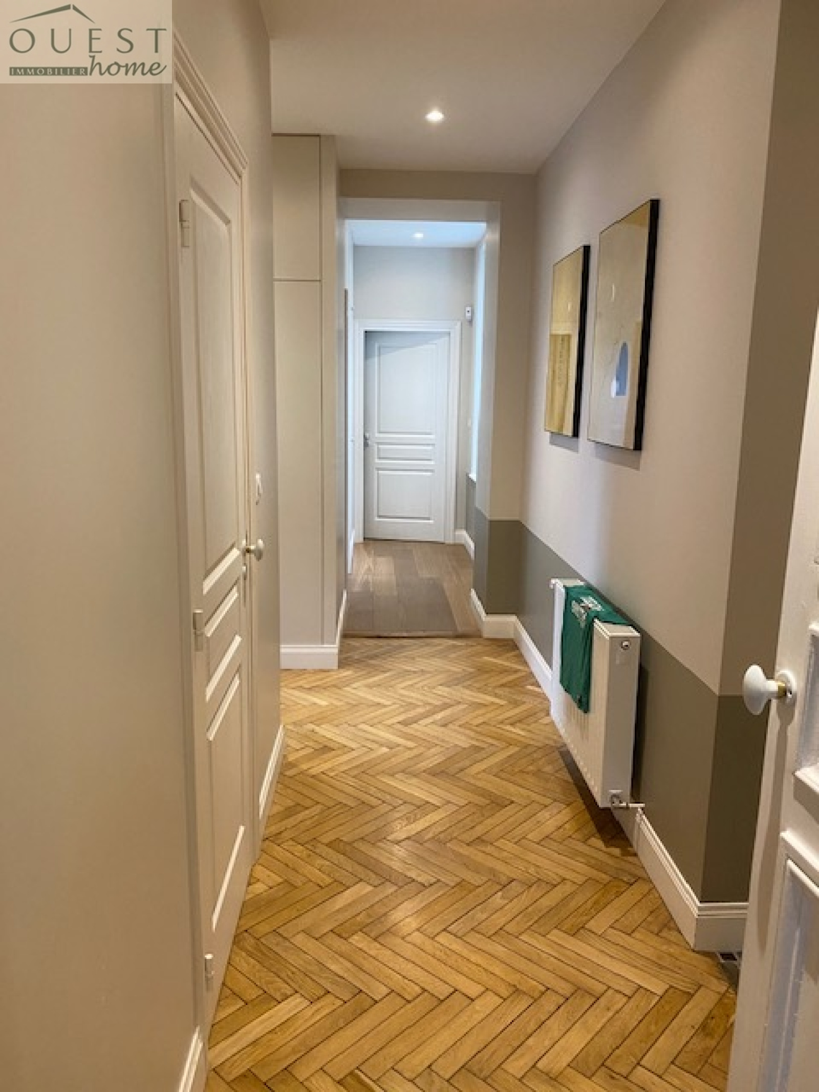 L'appartement se compose d'une grande pièce de vie (salon/SAM) avec parquet à l'ancienne, cheminées, d' une cuisine équipée attenante,; et pour la partie privative , de 4 chambres dont la suite parentale (avec dressing et salle d'eau), une salle d'eau et wc.