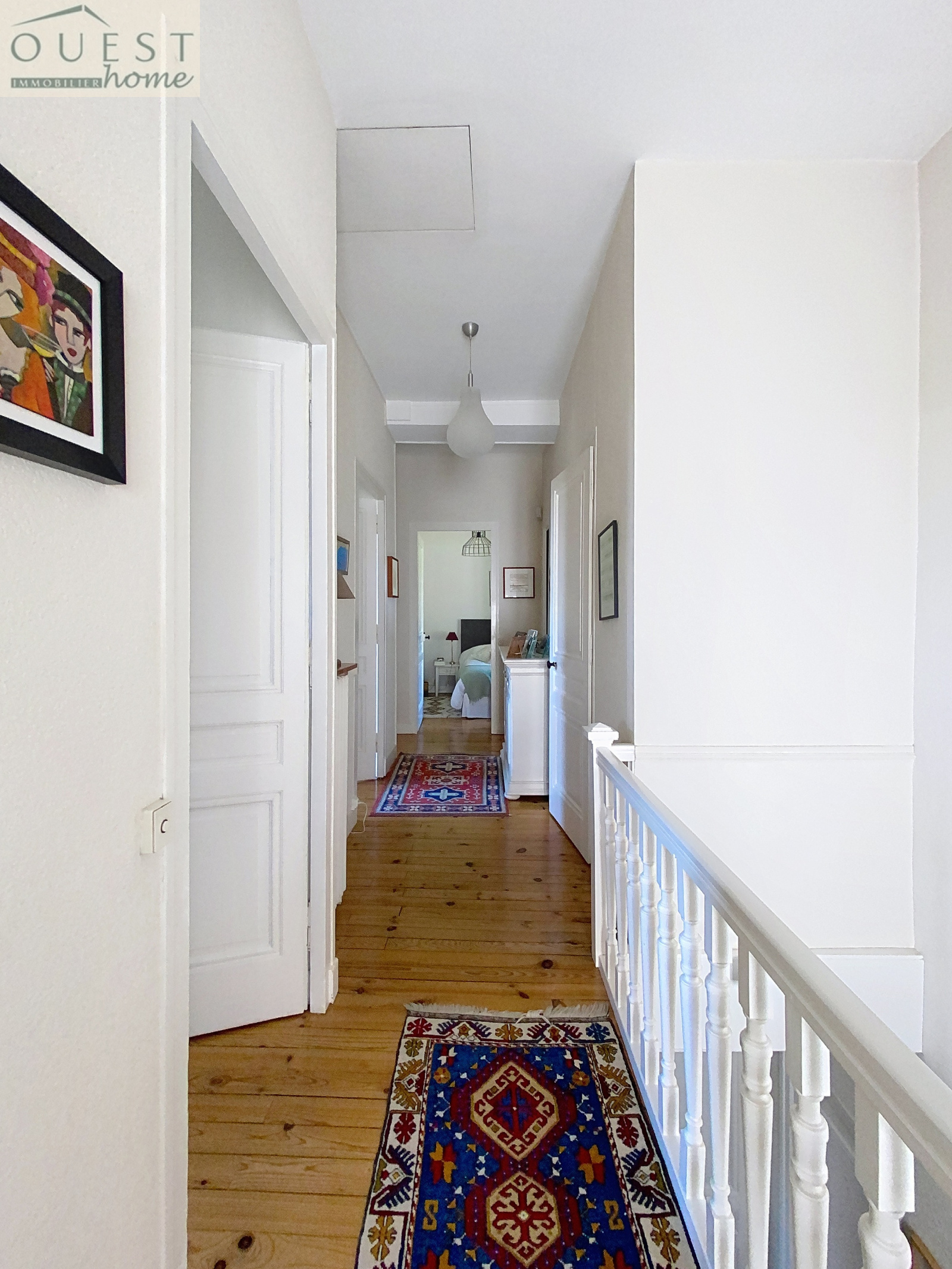 Dès l’entrée, les carreaux de ciment d’origine, donnent le ton. Le salon et le séjour disposent tous deux de leur cheminée et d’un magnifique parquet en chêne, apportant une touche chaleureuse et authentique. La cuisine moderne, entièrement équipée, bénéficie d’un aménagement harmonieux et fonctionnel ; une salle de bain ainsi que des placards et des rangements complètent ce niveau.