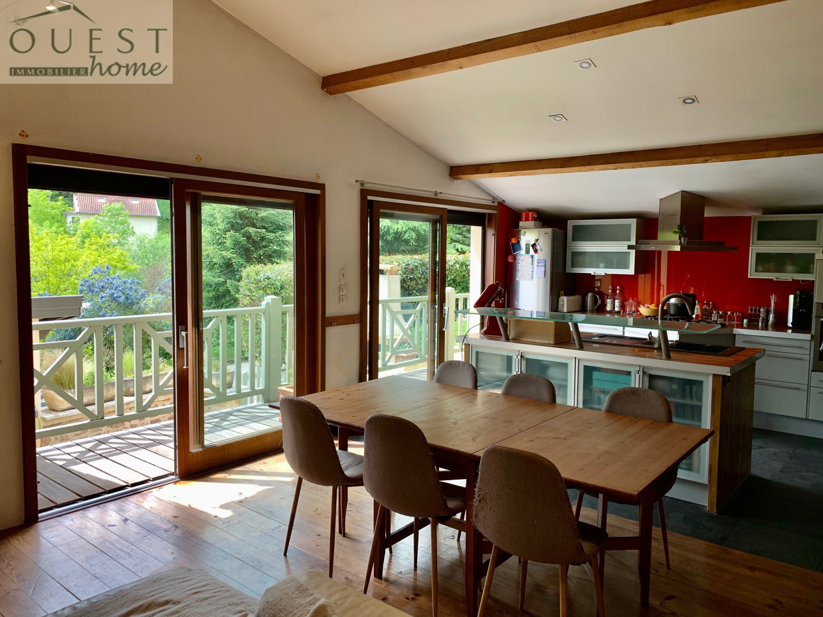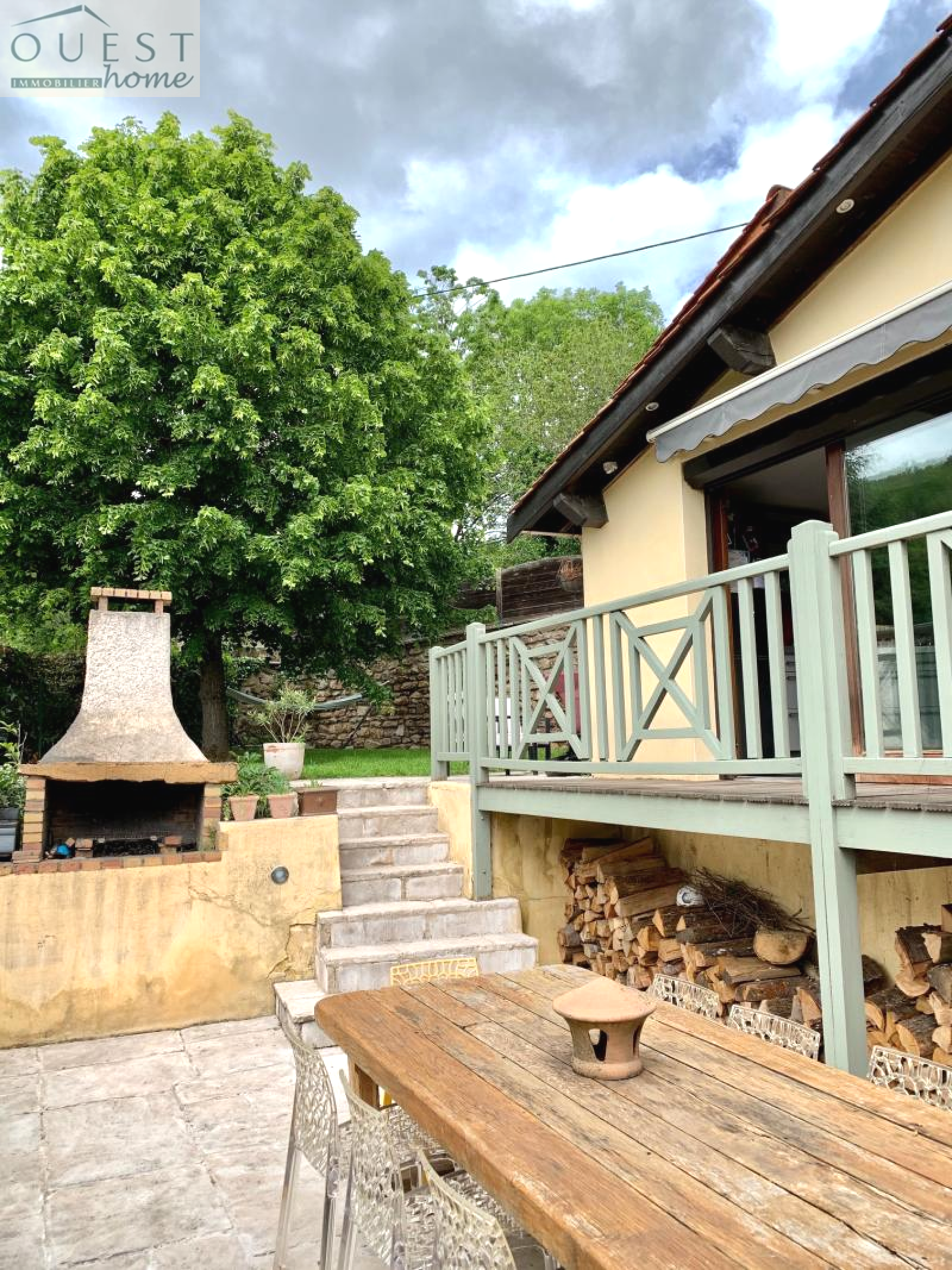 VENDU! Maison ancienne de village en mitoyenneté datant de 1890 atypique de 154 m2 sur quatre niveaux avec une belle vue dégagée sur la campagne. Grande pièce de vie de 43m2 donnant sur la terrasse exposée sud avec cuisine équipée ouverte avec cellier attenant. Salon avec cheminée et plafond à la Française, 3 chambres, 2 salles de bain, un bureau. Belle terrasse barbecue et jardin arboré de 200 m2. Un garage fermé et deux places de parking exterieures dans la copropriété de 7 lots.